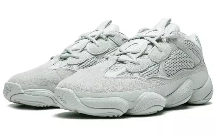 Featuring an understated color between white and grey, the adidas YEEZY 500 ??Salt?? introduces a street wear silhouette with suede overlays on a mesh upper. Underneath is a chunky sole carrying over the same color scheme.